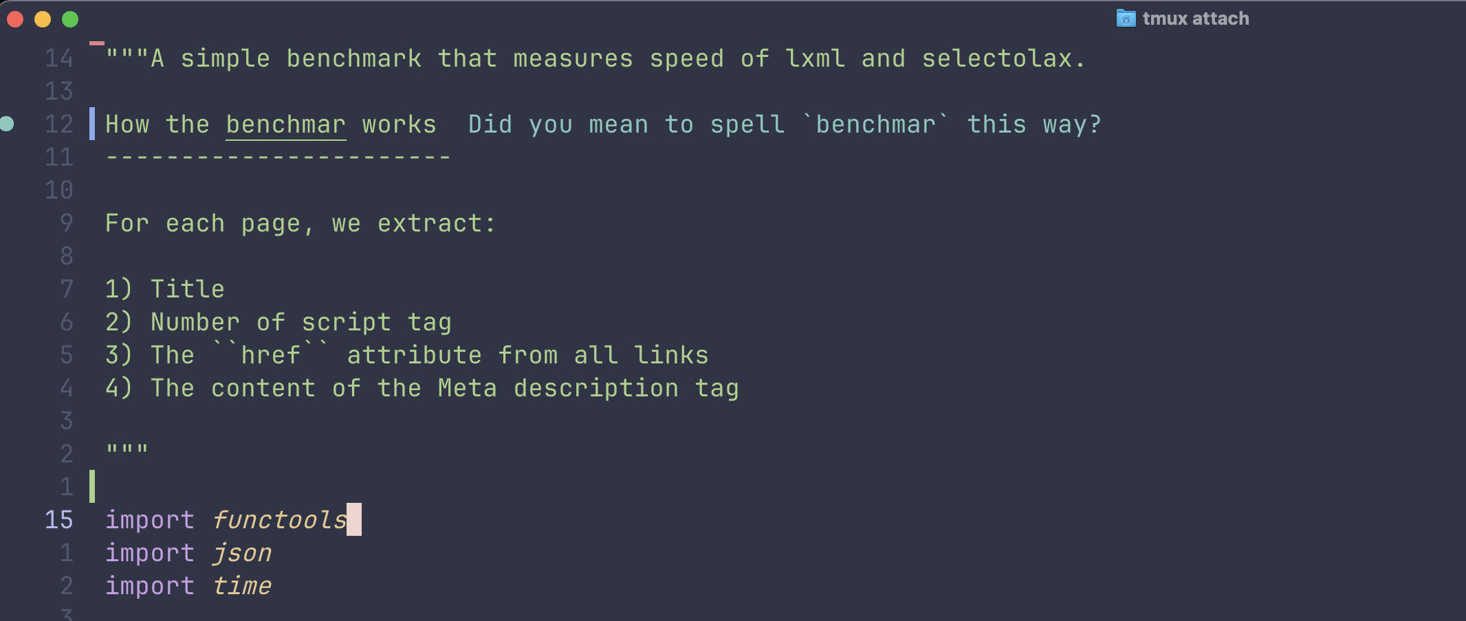 client that outputs SQL results in CSV or JSON to the terminal. Although it can output it to a file, that's an extra step, since I usually only need to copy-paste the output to Slack. This can be done via mouse, but painful with tmux setup, since you need to scroll the buffer when the output does not fit in one screen.